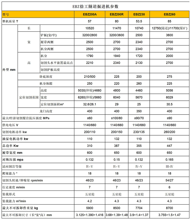 硬岩掘进机型号及参数